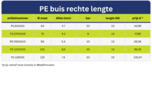 PE-buizen zijn bij ons verkrijgbaar in diverse maten.